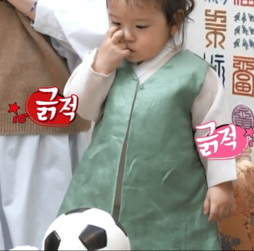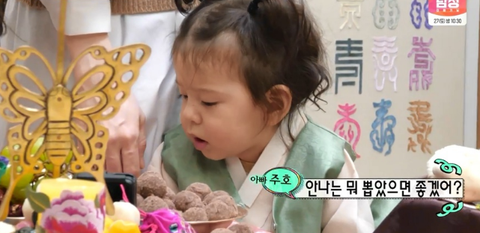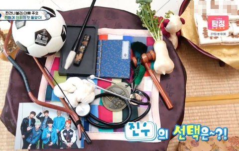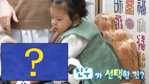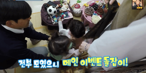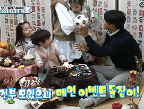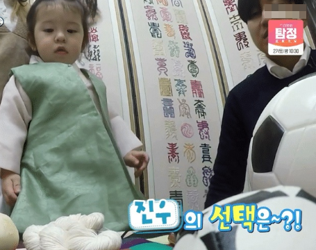<슈돌>에서 진우가 돌잡이 하는 모습이 나옴