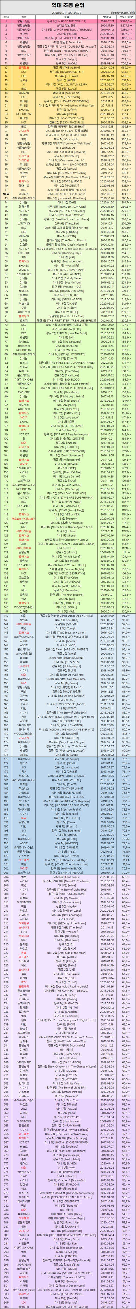 트와이스 블랙핑크 엑소 세븐틴 샤이니 빅뱅 방탄 동방신기 레드벨벳 여자친구 오마이걸 러블리즈 방탄소년단 아이들 버스터즈 마마무 베리굿 라붐 루나솔라 업텐션 빅톤 시그니처 더보이즈 에이티즈 스트레이키즈 온앤오프 AOA 우아 베리베리 티오오 EXID 에이핑크 펜타곤 비투비 아이콘 원어스 온리원오브 모모랜드 아이즈원 있지 에스파 위너 씨앤블루 jbj 원타임 슈퍼주니어 빅스 비원에이포 엔시티 에스에프나인 몬스타엑스 엔플라잉 아이즈 데이식스 뉴이스트 엔하이픈 위아이 보아 청하 나띠 위클리 씨엘씨 아스트로 카드 고스트나인 골든차일드 이달의 소녀 앨리스 드림노트 드림캐쳐 네이처 원위 체리블렛 에버글로우 투모로우바이투게더 밴디트 동키즈 에이비식스 로켓펀치 프로미스나인 공원소녀 씨아이엑스 크래비티 트레저 위키미키 원더나인 우주소녀 크나큰 에이프릴 투바투 더보이즈 스키즈 엔하이픈 에이티즈