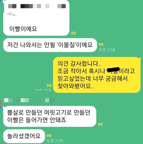 저게 설령 이빨이 아니라고 한들 점주의 태도가 너무 화가 남 저런 사람은 망해버려야됨 ㅋㅋ