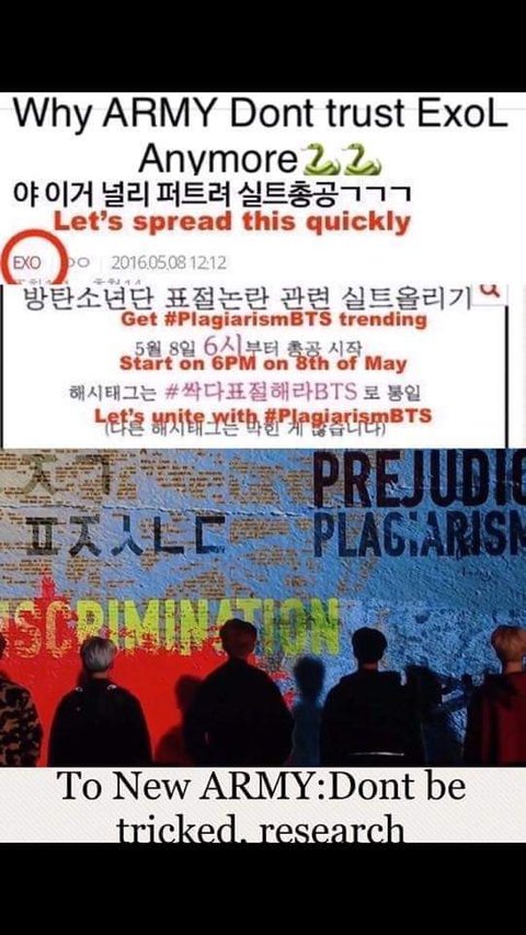 Then there's Exo's fan, they've done more things than I can't count, but the biggest one was they trended "Plagiarism Boys" in Korea on the day of BTS' first dome concert in year 2016.