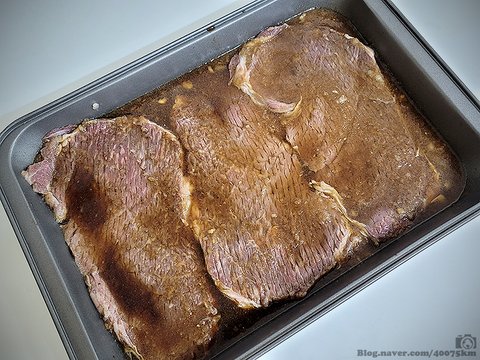 두세시간 정도 연육제에 담가두었다가 이번에는 양념장에 재워둡니다.