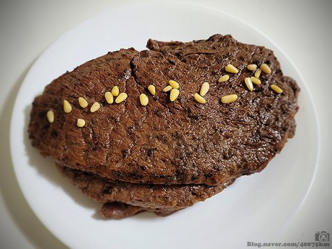 그런데 네모반듯한 모양을 제외하더라도 평소에 먹던 산적과는 많이 다른 모습입니다.