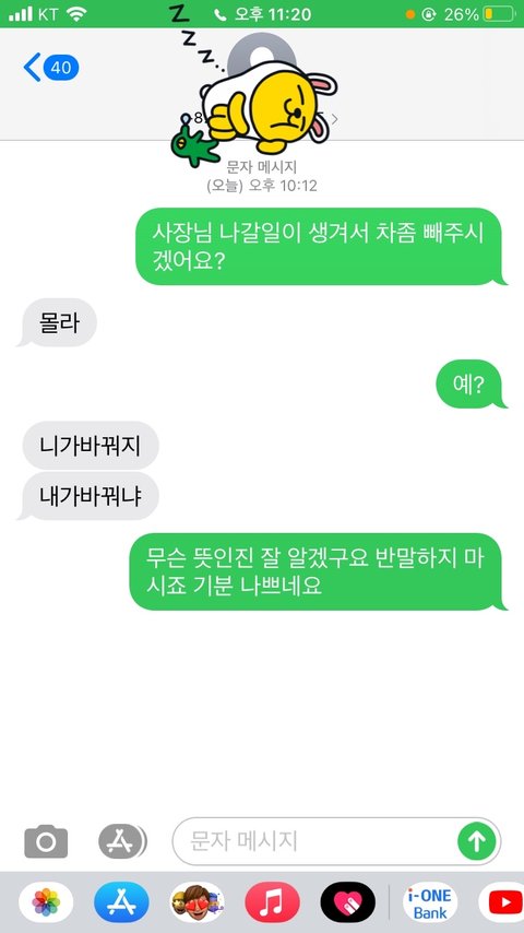 그러고 5-7분 가량 기다리고 있었으나 지속적으로 답이 없어 문자를 보냈습니다.