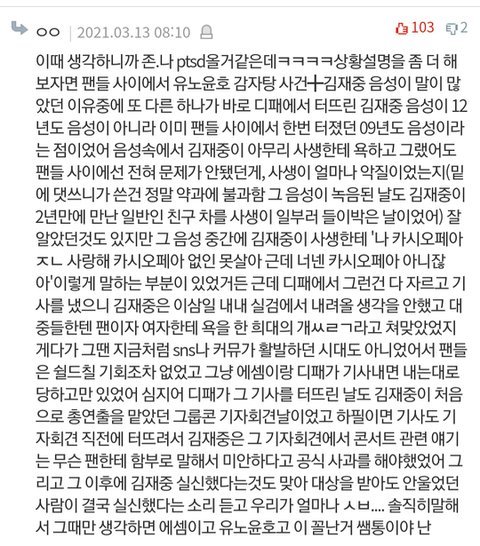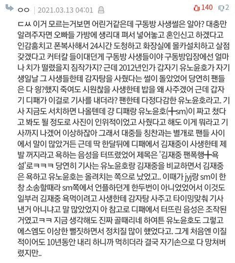 난 김재중 늦덕이고 톡선에 있던 동방신기 소송 진실에 관한 글 댓글 정독하다가 이런걸 발견했는데 ㅅㅂ 정병 제대로 오더라ㅋㅋㅋㅋㅋㅋ 진짜 글까진 안쓰려고 했는데 정병와서 밤새고 그동안 사생음성으로 쳐맞았던거 생각하면 억울해뒤질거같고 이럴때 아니면 정정못할거같아서 따로 글까지 쓰게 됐어 이거 톡선 좀 보내주라
