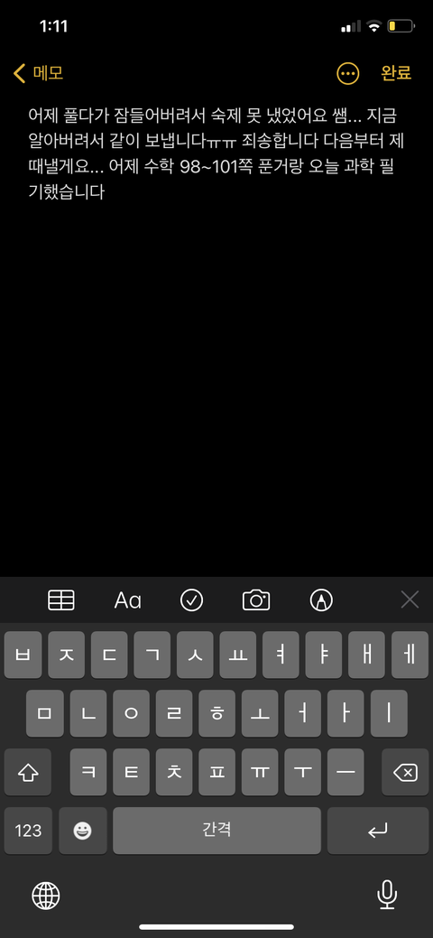 나 어제 숙제 못 냈ㄴ는데 쌤이 오늘 기억 못 하시더라고 하... 그래서 어제 푼거랑 오늘 한 거랑 같이 내려는데 말이 좀 이상해보여서 ㅠㅠ 어케써야대? 어색한 부분 고쳐주랑...ㅠㅠㅠㅠ