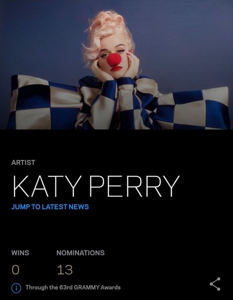케이티 페리는 13번이나 노미됐었는데
