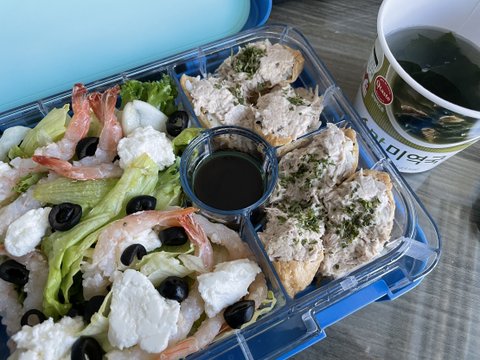 간단하게 먹으려고 샐러드를 싸왔었습니다.