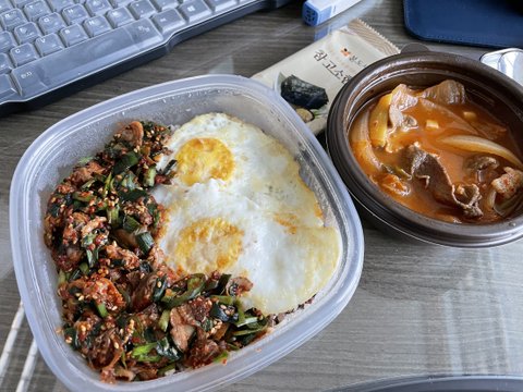 김치찌개는 본도시락에서 배달 시켰습니다.
