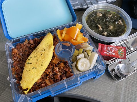 지금 보니까 도시락 겉 껍데기 어디갔지.