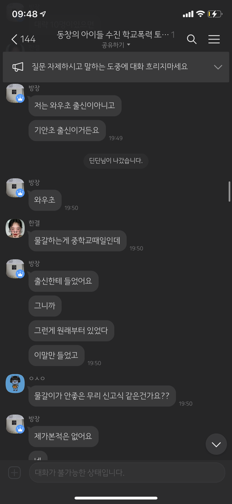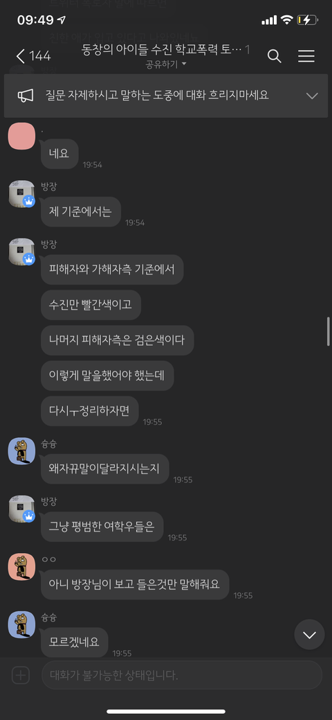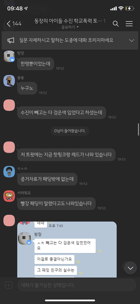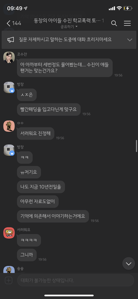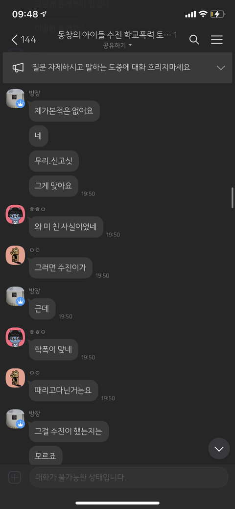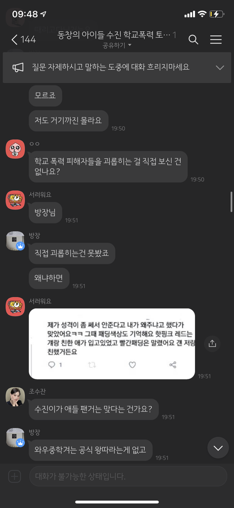 동창의 아이들 수진 학교폭력 토론방 방장 = 동창신기 = 조선왕조씰룩쌜룩 = 루이비통 시계남 =용기를 내라 = 도비는 자유야 = 그리운