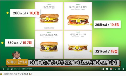 안타깝게도 에그마요는 열량이 굉장히 높고 단백질은 적어서..