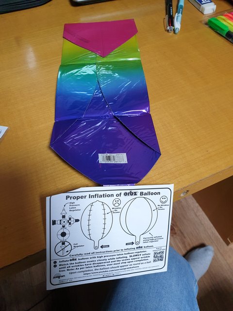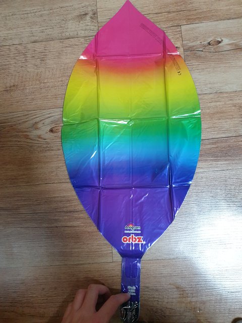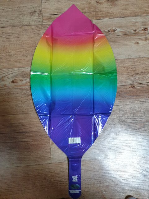 처음에는 잎사귀 모양이었다가 불면 비치볼 공모양으로 변신하는 특이한 구조를 은박풍선입니다.^^ 크기는 16인치.