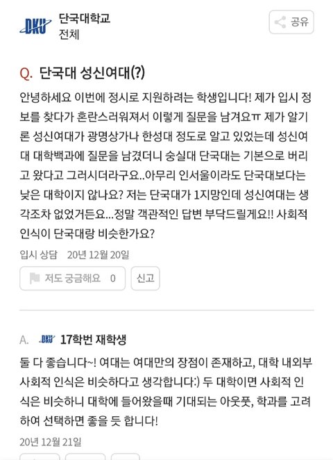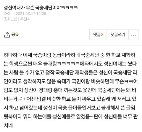 국민, 숭실, 세종, 단국도 성신 국숭세단이랑 사회적 인식+입결 인정해주는데