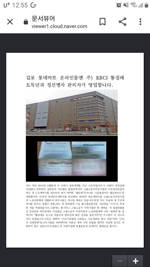 내용이재갑장관님은 대체 뭐 하시는 분인가요? 코로나핑계대고 비정규직이 90%로 늘었는데 이 시국에 작성하지도 교부받은 적도 제가 근무하지도 않은 근로계약서를 위조해서 들고나와 1달반만에 임금체불 30만원 떼먹고 손대지 말아야 할 4대보험을 손을 덴 주)KBCI 김포 롯데마트 온라인몰 물류센터 파견관리업체 영업정지 시켜주세요. 대체 하시는 일이 뭔가요? 이 쓰레기 파견업체가 위반한 근로기준법은 무려 4조,7조,9조,17조,19조,39조이며 처음부터 사문서위조에 받은 적이 없는 근로계약서 임을 밝혔음에도 경기지노위,중앙노동위에서 적합판정을 받아 아직도 영업중에 있으며 제가 행정법원으로 소를 내니 기간이 지났다며 되려 각하하라고 말도 안되는 답변서를 보내오고 있는 실정입니다.