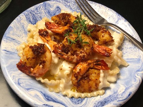 새우는 마늘버터에 굽고 소금 약간 파프리카가루로 마무리해서 올리기