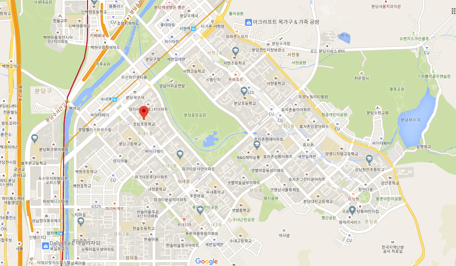 근데 실제상 지도를 보니 태수(胎水)는 갖고 년간(年干)을 충(沖)해도 흐름의 반전(反轉)을 못 시키는 것 같은데 서쪽으로 본류(本流)가 흘러 올라가는 상태를 띠는데 다만 분당 저수지가 그렇게 동쪽에 있어선 흘러나와선 수내동 사람 어굴을 만든데 코법령 아래 사람 입으로 들어오는데 와선 고여 있는 모습이 된다