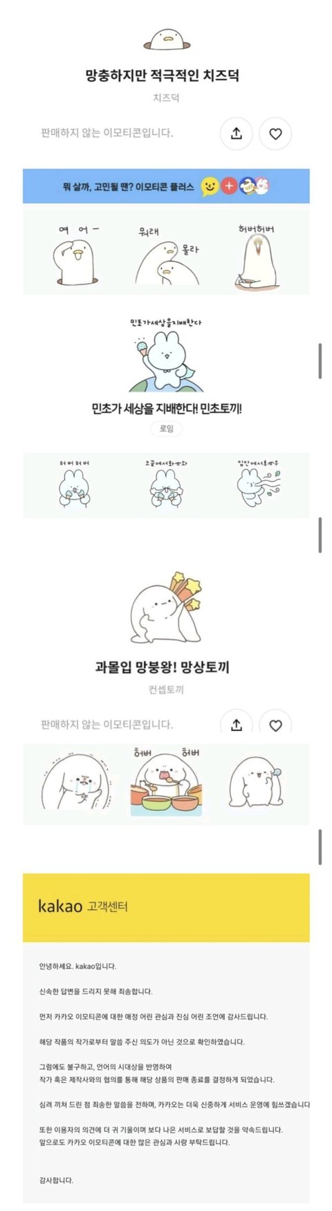 허버허버 카톡 이모티콘 판매중단