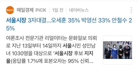 또 이번엔 1년짜리 시장이라 시장 2번 해본 오세훈이 하는게 적합하다고 생각함..ㅎ