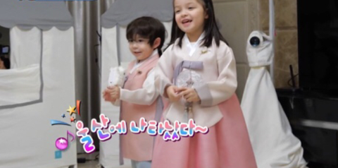 비슷한 분홍 한복을 누나랑 입고