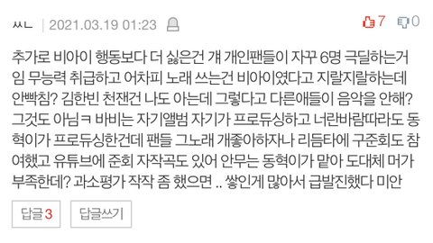 악개꺼져 김한빈 없으몀 안된다는글 이제 그만 멈춰~!!