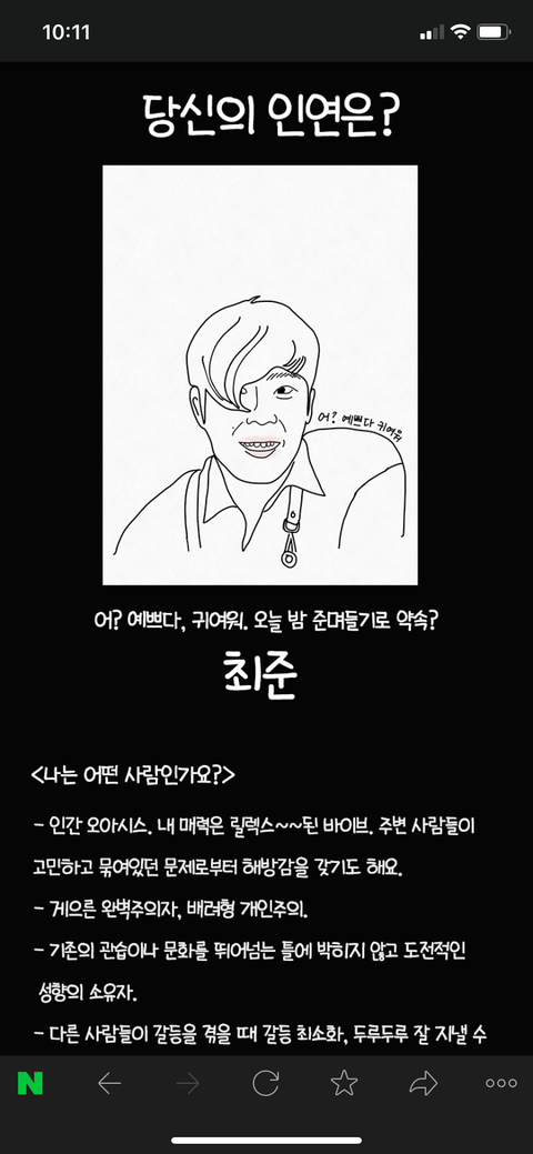 https://mysouldbrother.netlify.app/index.html 해보고 누구나왔는지 알려주라! 나는 최준나옴......