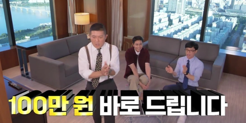 정답을 맞힌 정우성에게 백 만원을 주는데