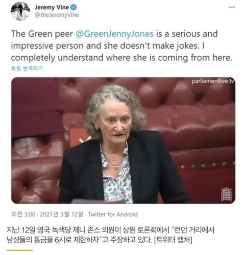 3. 한 여성 정치인이 영남들 오후 6시 이후 통금하라 발언