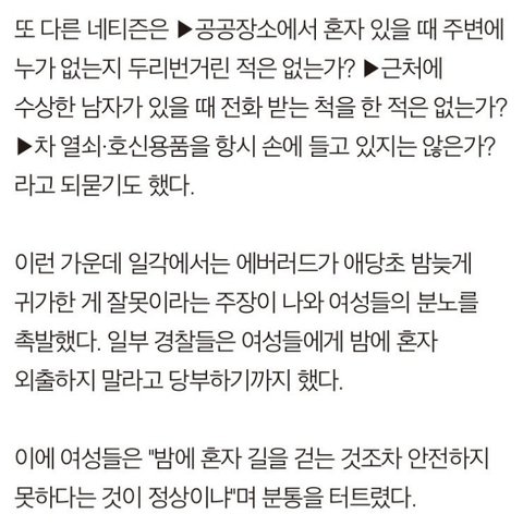 2. 경찰이 여자들 위험하니까 밤늦게 돌아다니는 거 자제하라 하자 여론이 곱창 나버림