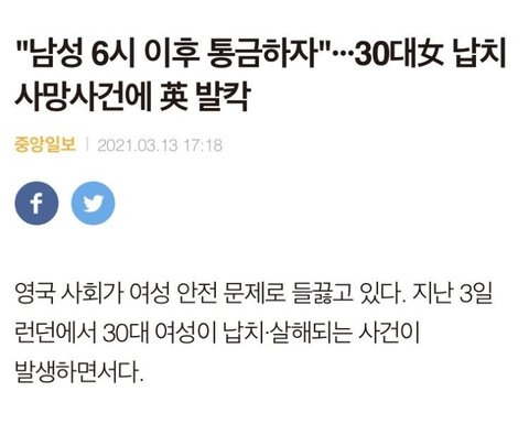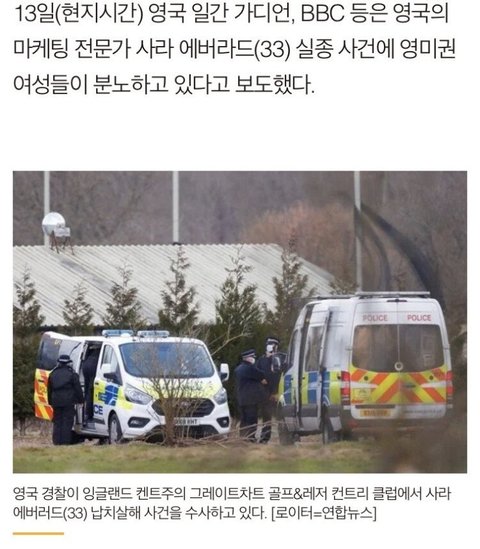 1. 영국에서 한 여성이 한밤중 귀가하다 납치 살해됨