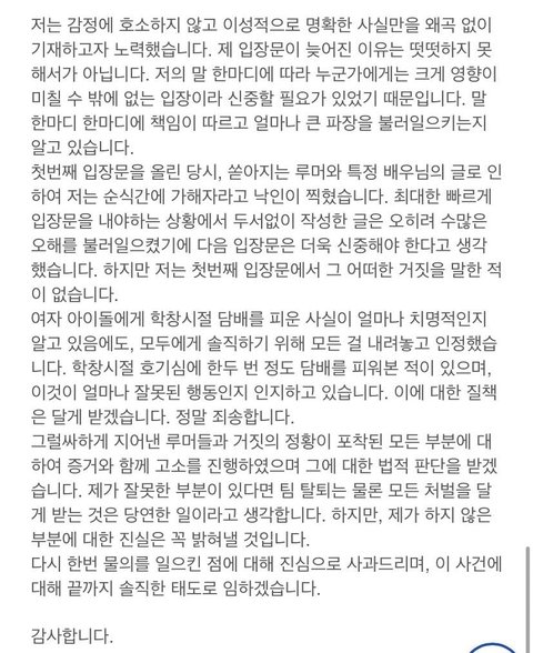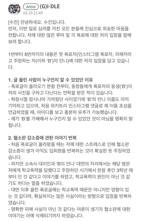 근데 진짜 다 구라였던 거면 지금까지 수진이 받았던 피해는 대체 어떻게 누가 보상해줄 것임... 이미 돌이킬 수 없이 많이 욕먹었고 피해 타격 진짜 조카 많았는데 그거 다 어떻게 해? 진짜 서신애 입장문만 기다린다