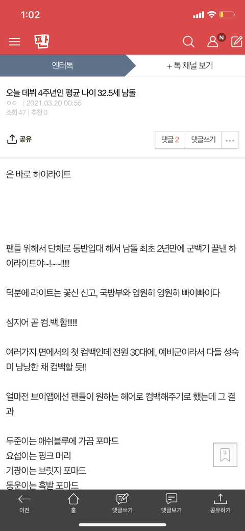 엔터에 4주년 글 썼는데 봐주라