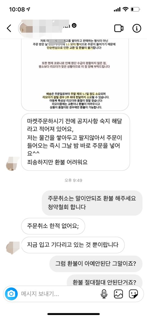환불금 주면서 꺼지라네요