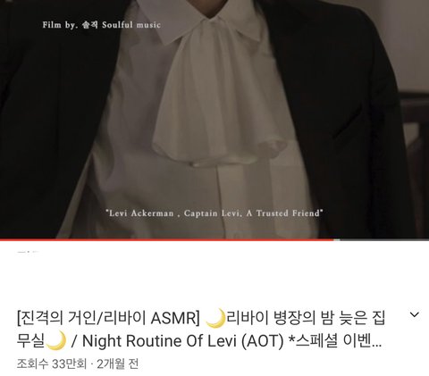 훈련 끝나고 잠옷으로 갈아입고 리바헤쵸 집무실 똑똑하고 들어간다음에 서류 정리하고 있는 병장님 옆에서 같이 책 펴놓고 새벽 공부 하는 척 하기 좋은 ASMR..... 병장님 한숨소리(학학) + 종이 넘기는 것도 섹시한 서류 패이지 넘기는 소리 + 새벽 소리 + 양초 타는 소리 + 후반부에 쟝이랑 에렌 싸우는 소맄ㅋㅋ 다 갓벽✨ 뭔가 공부 안하고 딴짓하면 옆에서 병장님이 서류 정리하다 말고 한심하게 째려볼거같아서 (설레고) 공부 잘 됨..