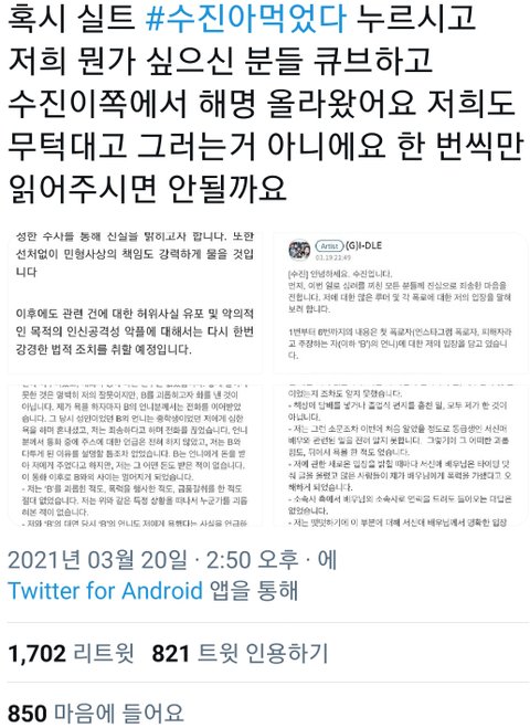 이미 학폭을 조작으로 확정지은 아이들 수진팬들.jpg