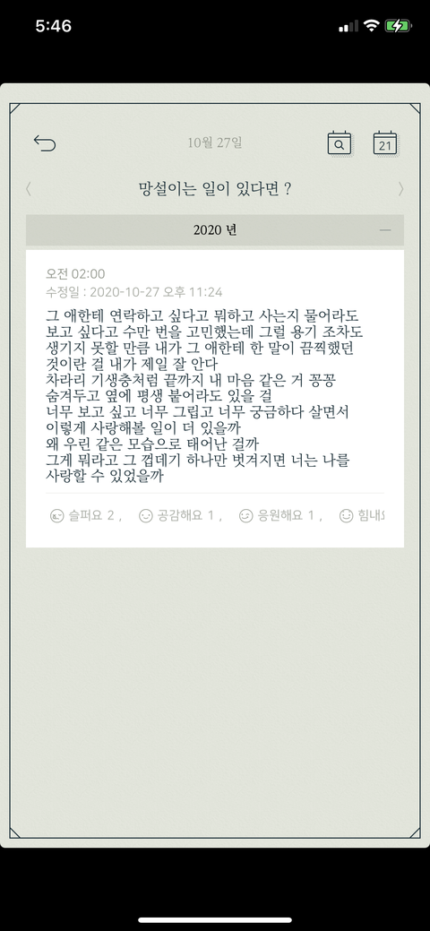 2년 정도 동안 우울증왔었는데 그때가 감성폭발한 시기엿던듯