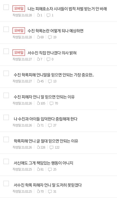 https://cafe.naver.com/angelspirit 여기로 들어오면 되고 까페이름은 수진사랑해 인데 아직 네이버에서 수진사랑해까페이름 으로는 검색이 안되니까 링크 걸어서 들어와야 해 앞으로각 사이트에서 진실을 알리는 글들 퍼나르고 악플신고 명예훼손 모욕에 pdf 큐브보내기 운동을 할거야 다른 팬덤도 억울한 일 있으면 같이 돕고 서신애 입장표명 압박하고 들갤 아이들피난처도 만들어 놨어 들갤운영진 사퇴운동 및 고소운동 언론 및 유투버 고발운동도차츰 활동을 확대시켜 나가려 해 꼭 좀 홍보해주고 힘을 모어줘 큐브랑은 아무 상관없고 이전에 피해자 언니 말을 믿으면절대 안되는 이유로 글 연재했던 쓰니야 지금까지 관심과 지지 고마웠고 끝까지싸우고 멋있게 마무리 하고싶어 관심과 응원 부탁해 앞으로 수진사랑 으로 닉 쓸거야