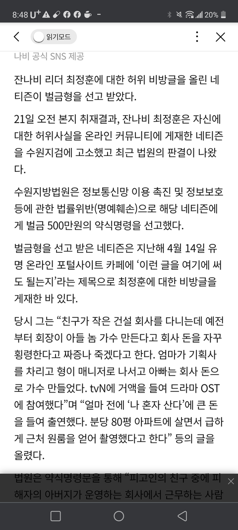 아직도 믿고 있는 사람들 있을텐데 허위사실 유포죄로 벌금형 받았음..