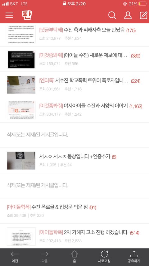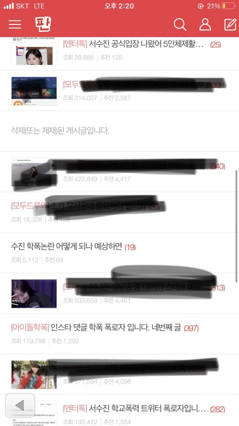 입닫고 서수진 관련 글 전부 책갈피 해 놓고 댓글도 이전까지는 수진관련 거의 댓단거 없고 근데 지금 공입 나오고 아직 완전히 끝난건 아니지만 그래도 수진측이 워낙 증거 증인 녹취록같은거 가지고 당당하게 이야기하고... 자기 탈퇴까지 걸었잖아