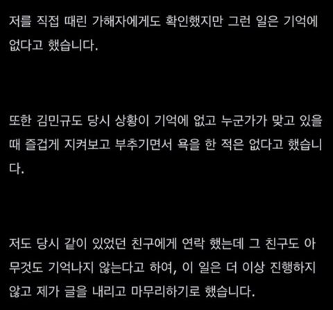 이 부분에서 마치 학폭 당한건 맞는데 아무도 기억을 못해서 그냥 이제 그만하려한다 이런식으로 쓴거 같은데 나만 그렇게 느끼나 그래서 더 빡침