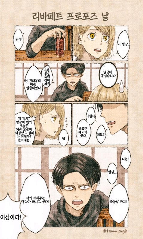 딱히 리바페트 파지는 않고 리바이랑 페트라 같이 있을 때의 몽글아련한 분위기를 좋아하는데 이건 너무 좋아서..♥