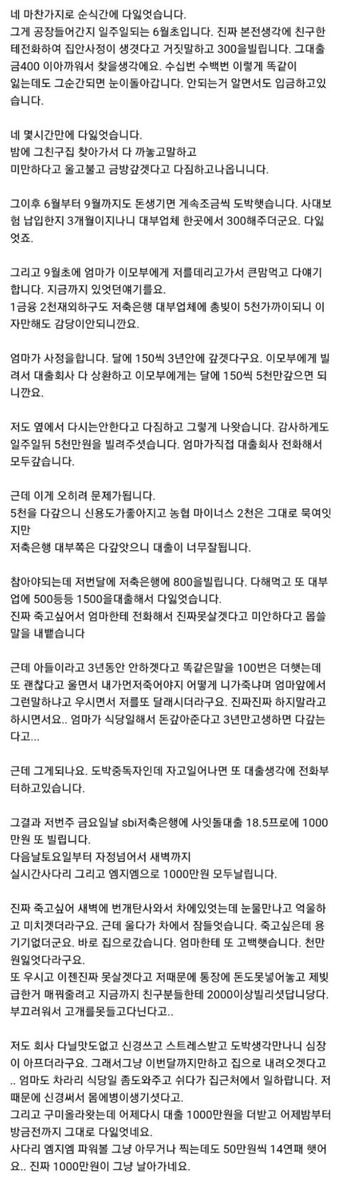 글쓴이는 저렇게 글 썼지만, 엄마가 홧병으로 돌아가시면 그 보험금으로 사다리 타러갈 새끼임