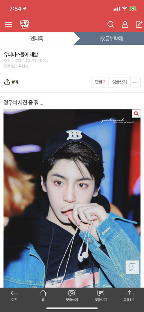 엔터에 우석이 사진 풀어달라는 글 올라왔어!!!가즈앙