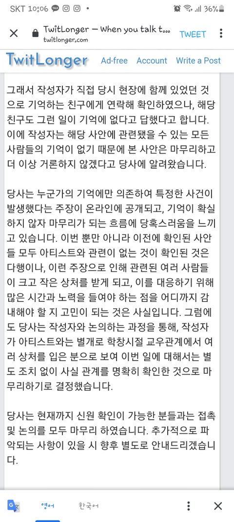 입장문 읽어보면 플디는 진짜 최선의 선택을 한거 같아서 더 속삭함 민규도 알고있으면서도 고소 안하고 넘긴거일거 아니야..