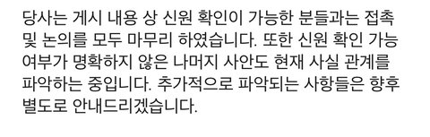 앞으로 사실관계 확인하는 공식입장은 여기서 끝일것 같다