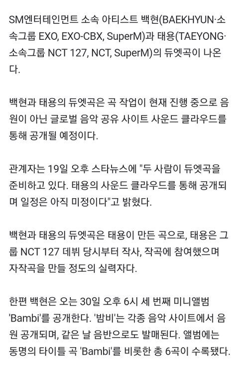 혼자서 작사작곡 했다고 한 적 없어ㅠㅠㅠ작곡가 형들이랑 같이 만들었댔어 암튼 백현 태용 사클 노래 많관부~~~