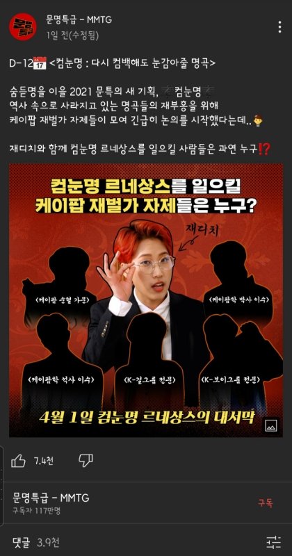 너튜브 ㅁㅁ특급 다시컴백해도 눈감아줄 명곡