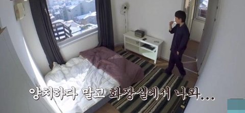 침구 잘 정리하고 화장실가서 씻는데