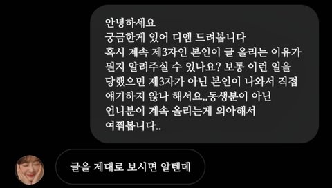 그리고 나서 수진 입장문이 올라왔을때, 솔직히 나는 이 이후에 반박글이던,폭로글이던 동생분이 글을 직접 쓸 줄 알았어.