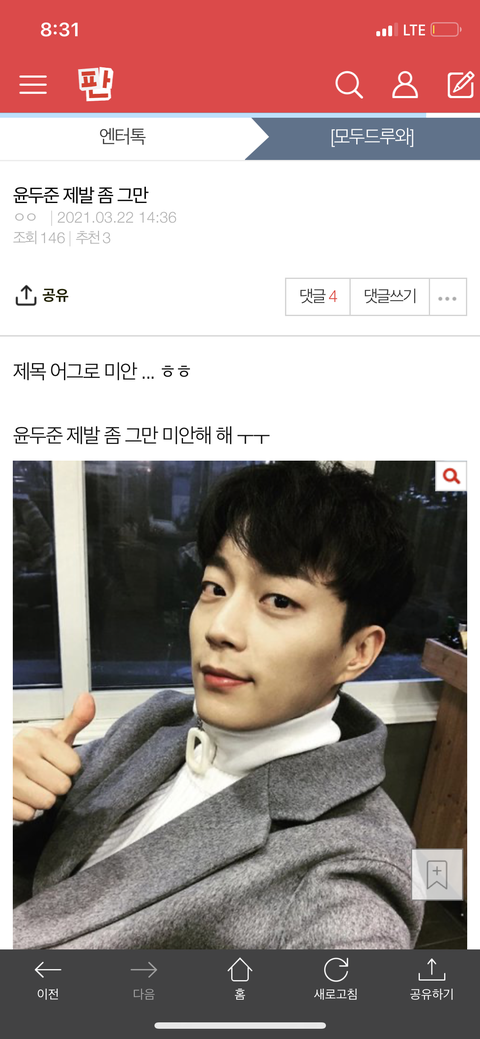 얘더라 나 엔터에 글썼엉 댓글 달러와 !!