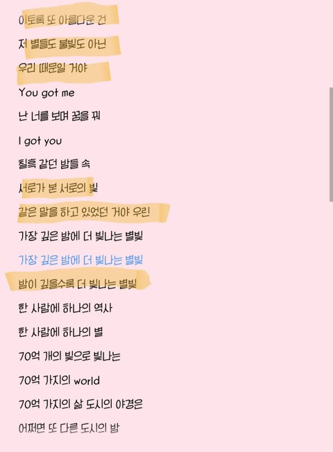 나도 모든 게 다 두려웠다면 믿어줄래모든 진심들이 남은 시간들이 너의 모든 해답은 니가 찾아낸 이 곳에너의 은하수에 너의 마음 속에